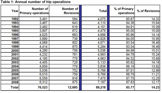 It is really very interesting BUT what really stuck out was the high percentage of hip revisions…