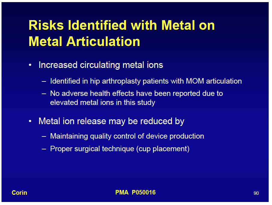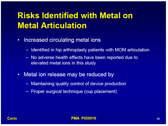 arthritis, Cobalt chrome, cobalt levels, Cobalt poisoning, Corin, DePuy, DePuy ASR™ Hip Resurfacing System, DePuy Hip Replacement, Federal Food Drug and Cosmetic Act, Food & Drug Administration, hip, Hip recall, Hip Replacement, hip replacement failure, Institute of Medicine, Metal on metal hip, Smith & Nephew, testing, Total Hip Replacement, UNited States