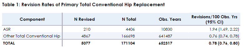 TABLE 1: Revision Rate of Primary Total Conventional Hip Replacement.