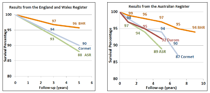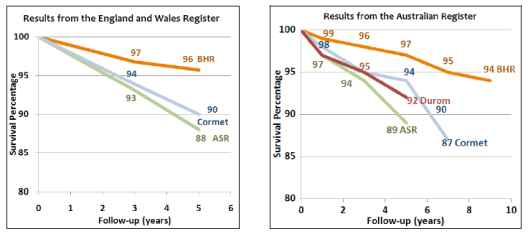 Cormet 2000 is also showing higher failure rates in the UK Register. The Australian Joint Register shows higher than anticipated failure rates with the ASR, Durom, Cormet 2000 and Bionik Resurfacings