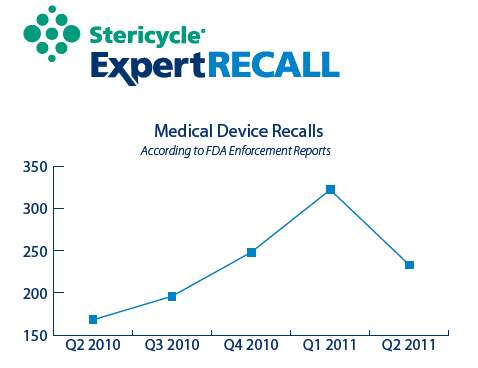 - Medical device recalls in the second quarter of 2011 declined for the first time in the past five quarters.