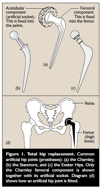 The harder materials also allow better lubrication of the joint, which means that the components will wear more slowly. Some common types of artificial hip joints are shown in Figure 1.