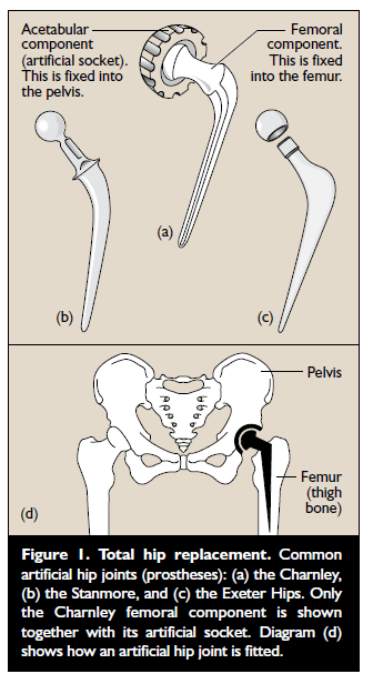 Pain should no longer be a problem – that is the major benefit of surgery. You will usually notice the benefit almost immediately after the operation, although you will of course have pain from the surgery to start with. You should have greater mobility and a better quality of life. But it is important to remember that an artificial hip is not as good as a natural hip. It does have some limitations, which are summarized later in this booklet (see ‘Physiotherapy and occupational therapy’ and ‘After the first few weeks’).
