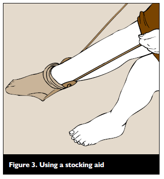 The occupational therapist will also help you to be independent in your daily activities. S/he will assess how physically capable you are and assess your circumstances at home when you are about to leave hospital. S/he will provide you with some additional gadgets to help you. These will include a raised toilet seat and equipment to help you dress (see Figure 3).