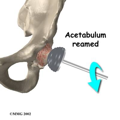 - In this procedure, the damaged surfaces of the femoral head and the acetabulum are removed and resurfaced: a metal cup in the acetabulum and a metal surface for the femoral head.