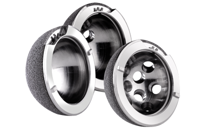 The Trabecular Metal Modular Acetabular System is a modular acetabular cup system consisting of a shell with a pre-assembled locking ring, a liner, and optional screws. The shell implants are used to replace the hip socket during total hip arthroplasty.